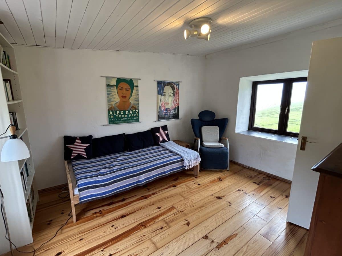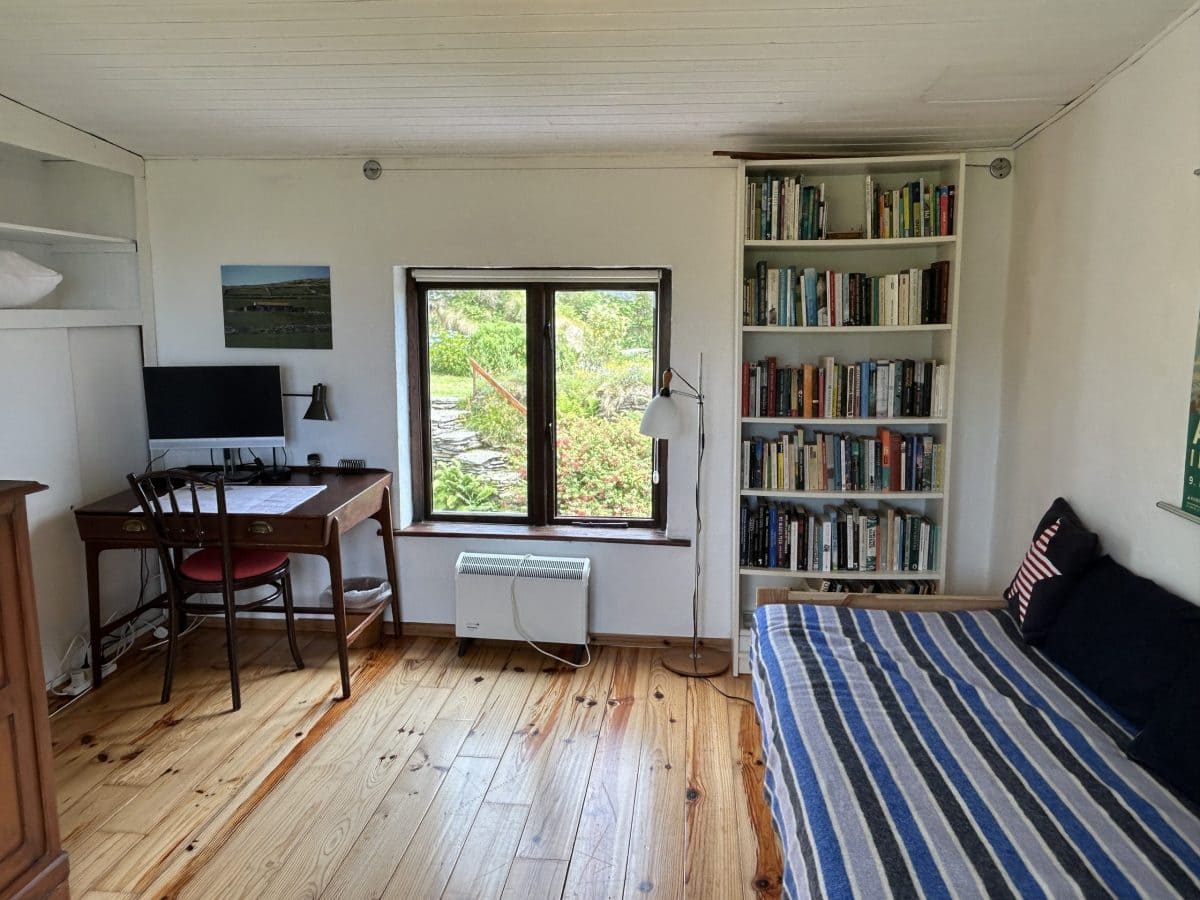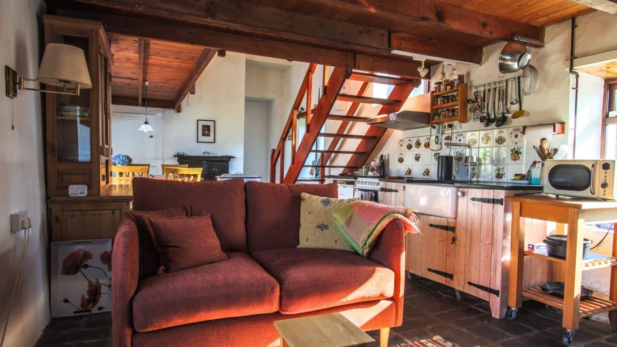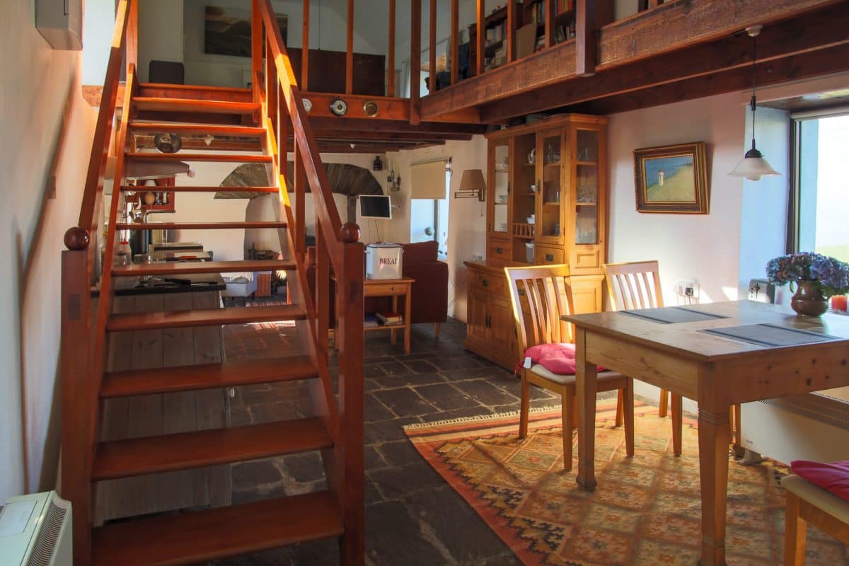 Es verfügt über einen großzügigen, bis zum Dachstuhl reichenden offen konzipierten Wohn- und Essbereich mit einer Innentreppe, die zur Galerie mit Doppelbett führt. Viele liebevoll arrangierte traditionelle Elemente wie der alte „Dresser“ (Küchenschrank) oder das „Belfast Sink“ verweisen auf die typische Einrichtung eines irischen Farmhauses.