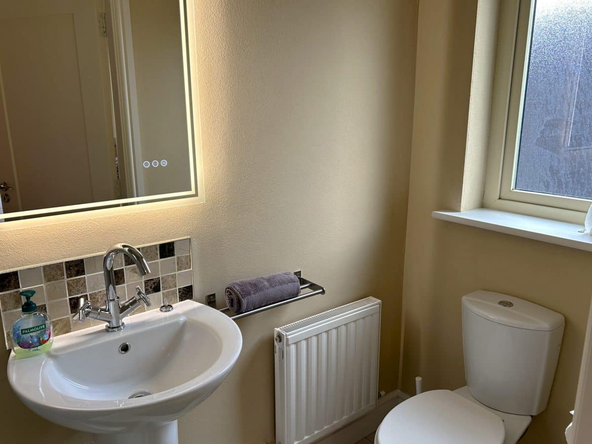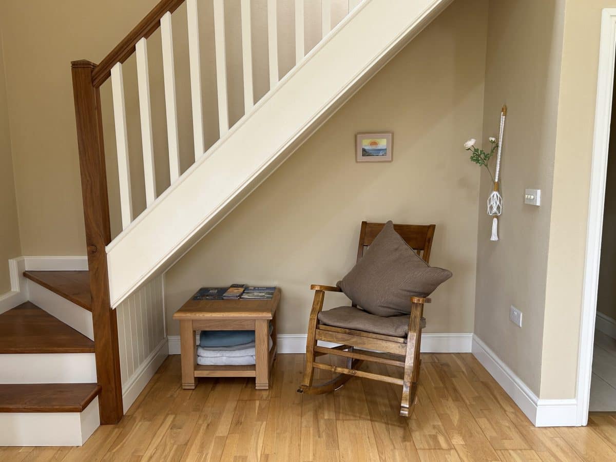 Das Cottage hat eine große offen konzipierte Wohnfläche mit Küche, Wohn- und Essbereich. Im Erdgeschoß befinden sich drei Schlafzimmer (eines davon mit eigenem Bad), ein separates Badezimmer, ein Wirtschaftsraum und ein Gäste-WC.