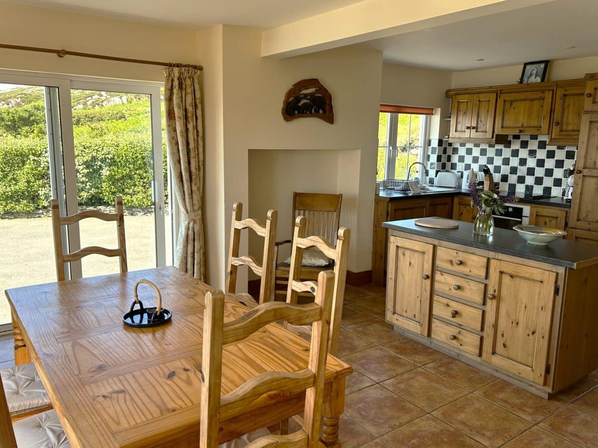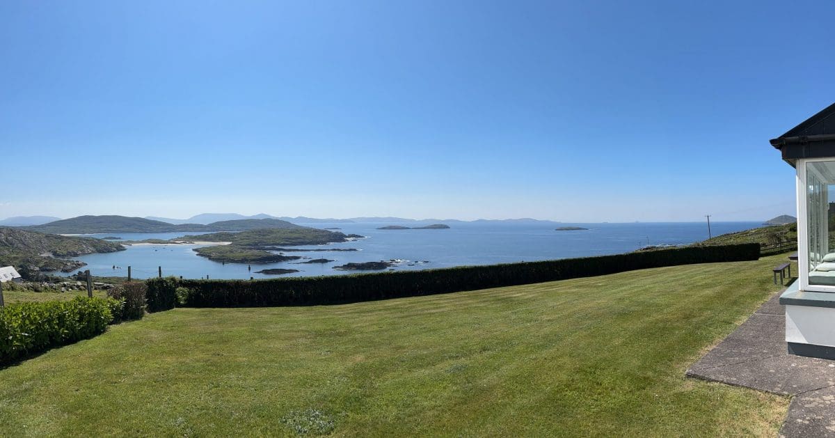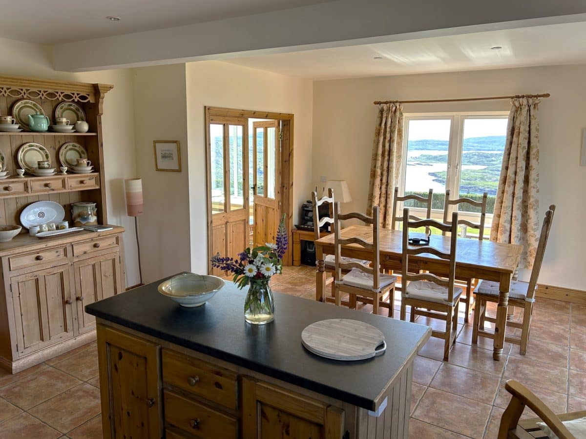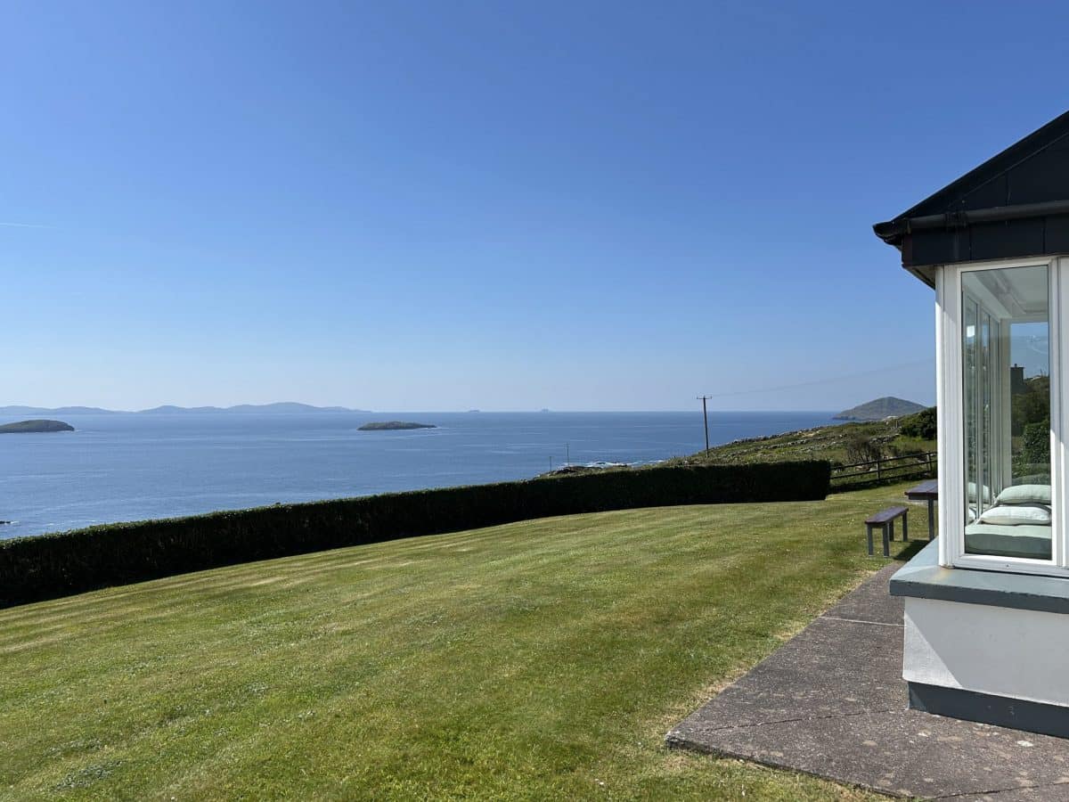 Große Fenster mit großartigem Panorama auf das Meer und die Berge von Kerry akzentuieren die Lage des Hauses.