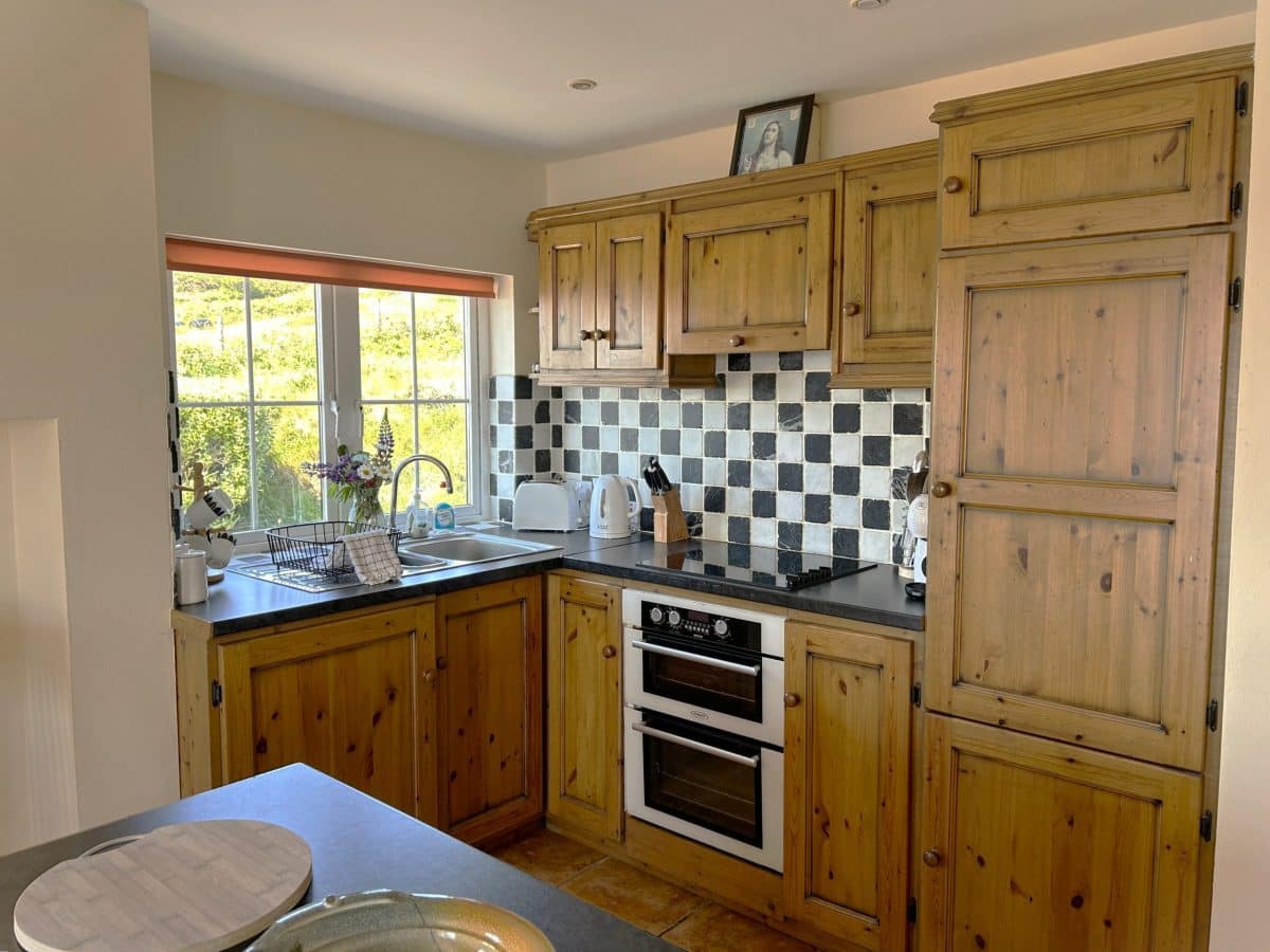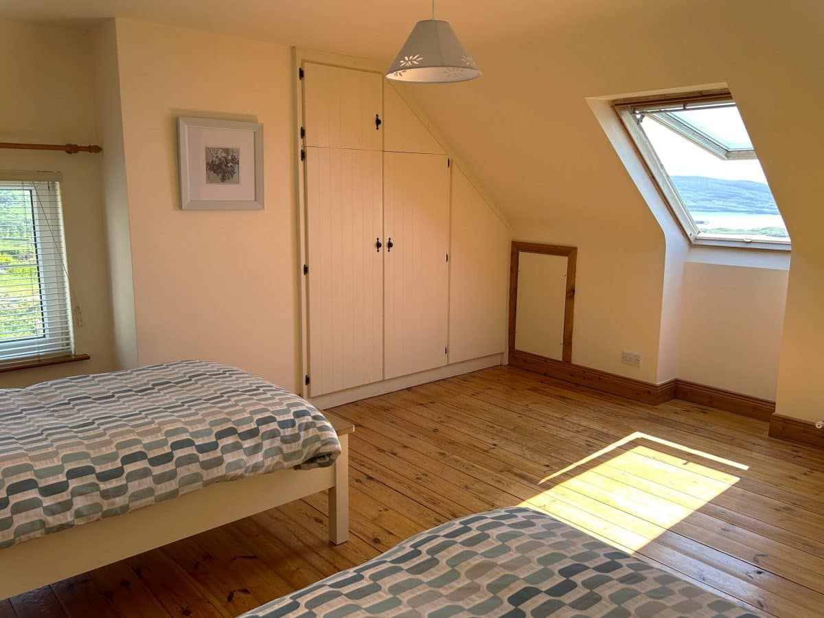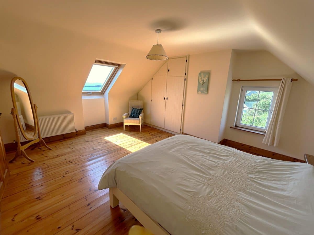 Große Fenster mit großartigem Panorama auf das Meer und die Berge von Kerry akzentuieren die Lage des Hauses.