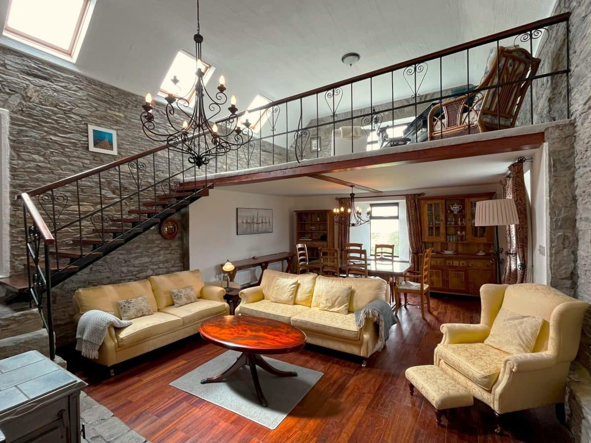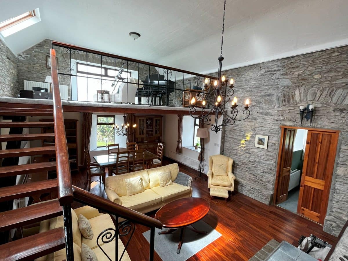 Das Herzstück des Hauses bildet ein großzügig dimensionierter und offen konziperter Wohn- und Essbereich der durch seine stilvolle Einrichtung den Charakter des Hauses unterstreicht. Eine Treppe führt auf die Empore von der man einen atemberaubenden Blick auf den Atlantik mit all den vorgelagerten Insel geniessen kann. Hier befindet sich auch ein sehr gut erhaltener Flügel auf dem gern gespielt werden kann.