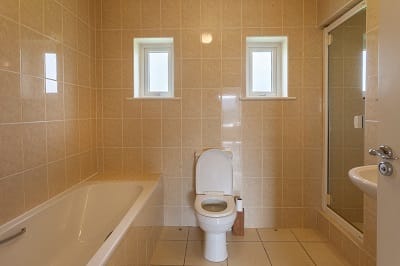 Badezimmer mit Toilette, Dusche und Wanne - Schlafzimmer I mit Doppelbett und eigenem Bad (Du/WC)