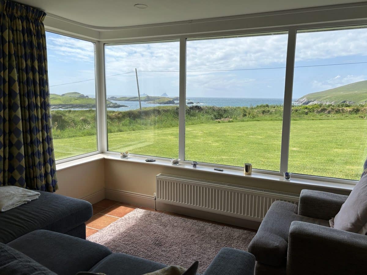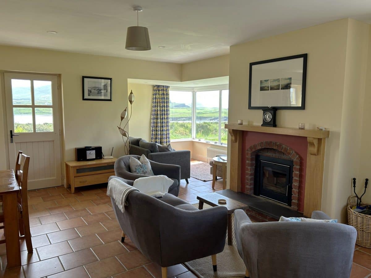 Geniessen Sie Gemütlichkeit mit wunderbaren Blicken auf das Meer und die Kerry Berge.
