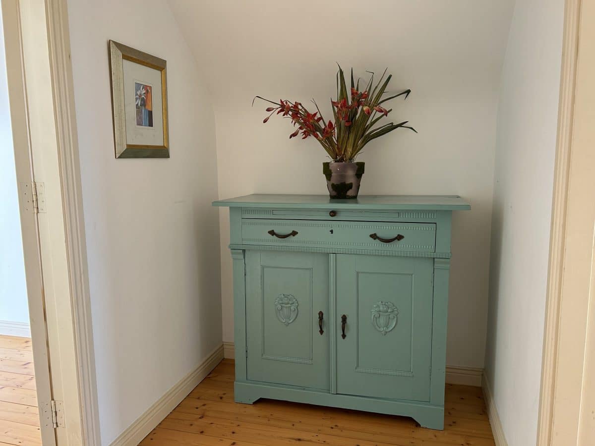 Ein Flur führt zu zwei Schlafzimmern und einem Wannenbad. Die separate, gut ausgestattete Küche ist sehr geräumig und ideal zum gemeinsamen Kochen.