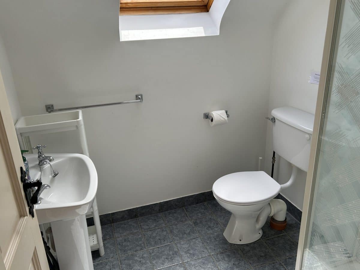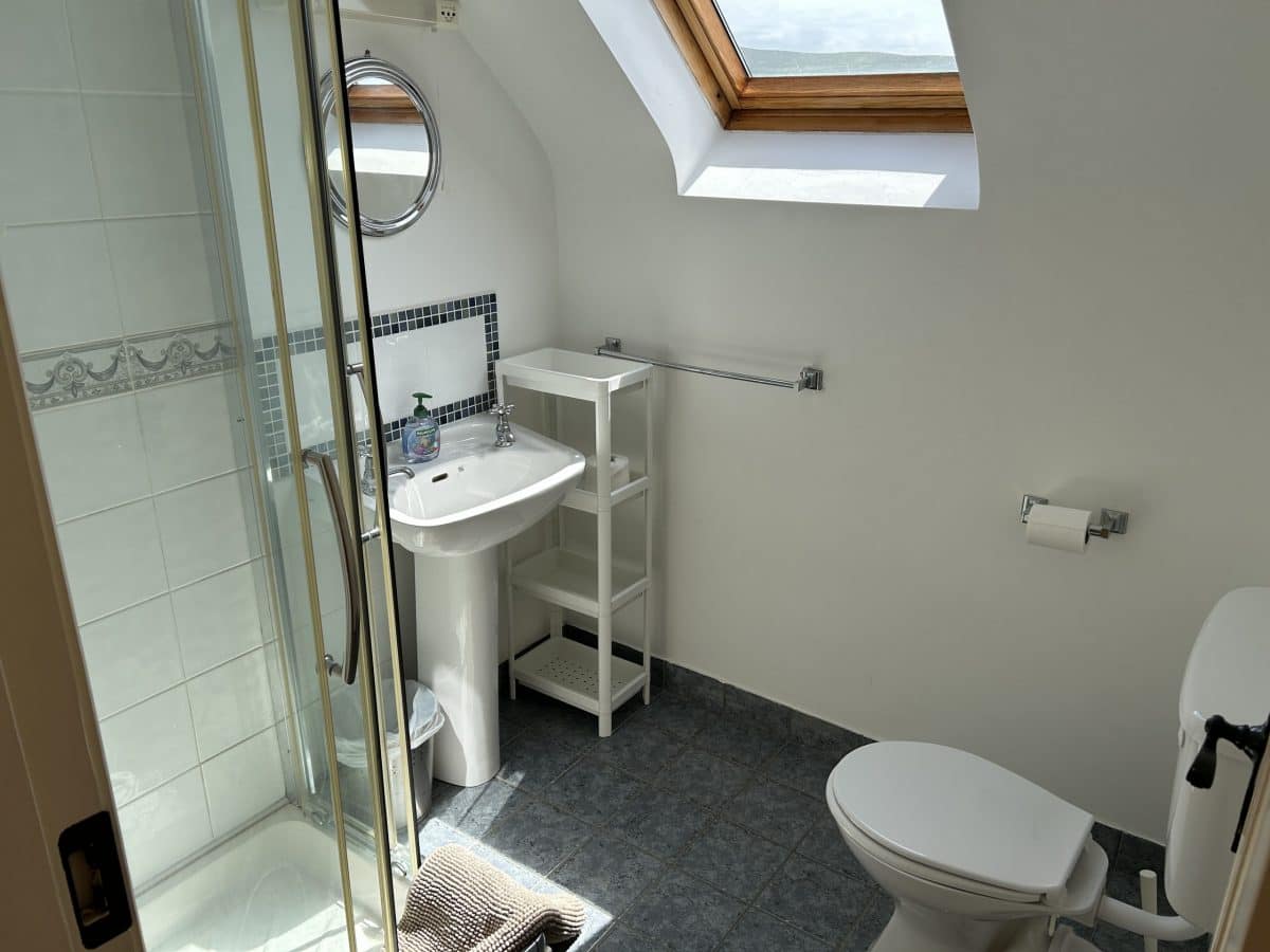 Eine Treppe führt ins Obergeschoß. Hier befinden sich zwei große Schlafzimmer, jedes mit eigenem kleinen Duschbad.