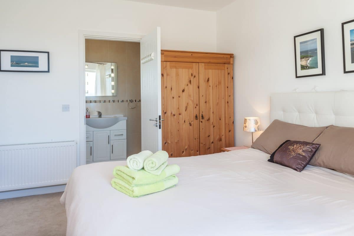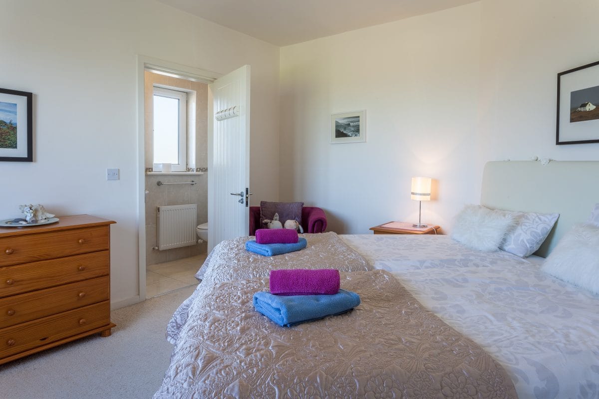 Das Haus verfügt über zwei Schlafzimmer und bietet somit reichlich Platz für 4 Personen. Beide Schlafzimmer haben ein eigenes angrenzendes Badezimmer mit Dusche und WC und sind räumlich deutlich voneinander getrennt.