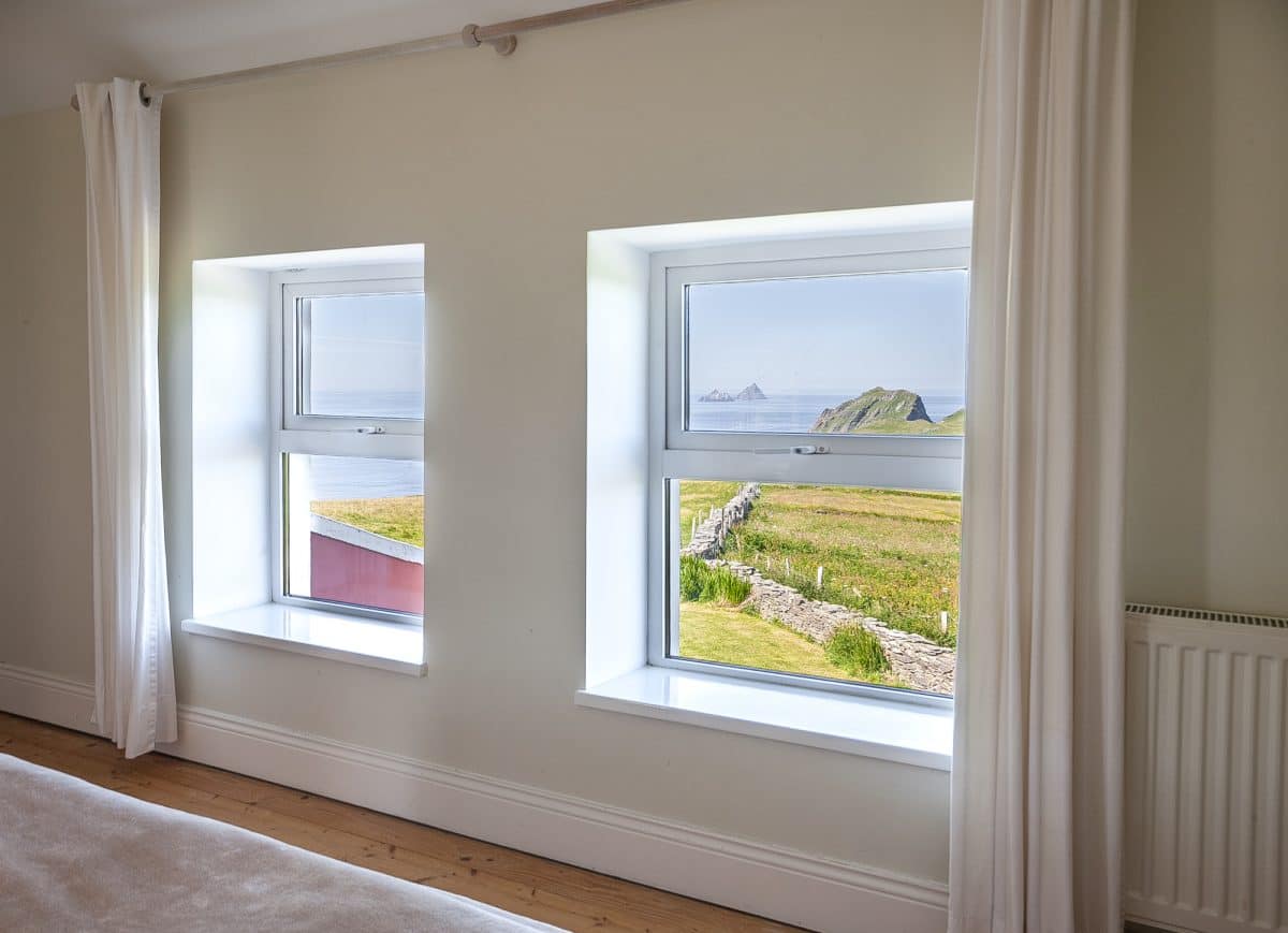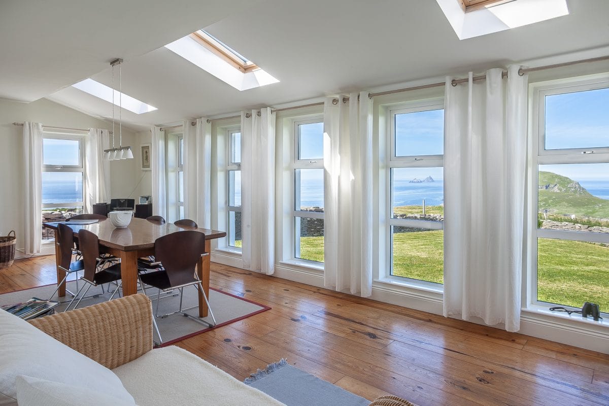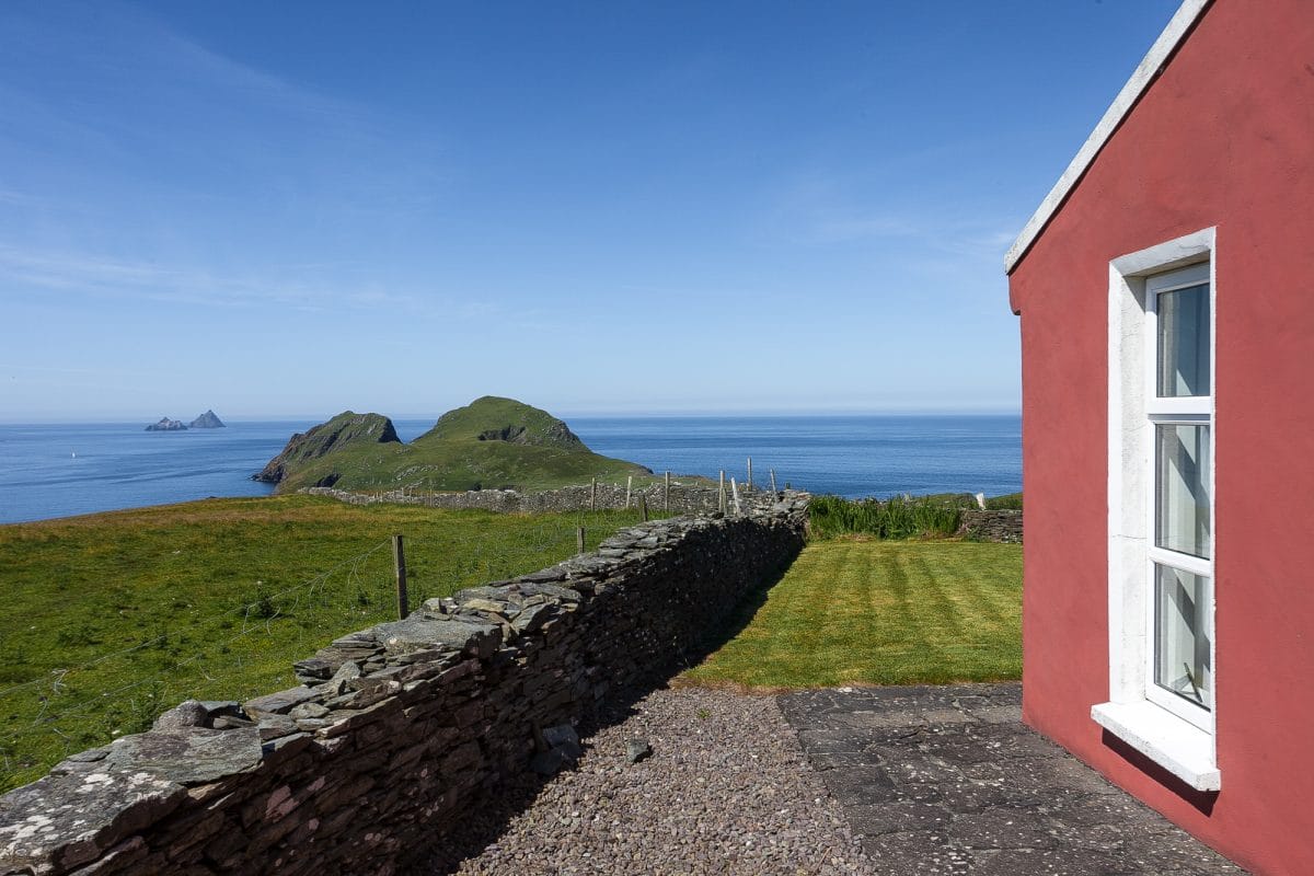 Vom Haus und Garten hat man einen fantastischen freien Blick auf den ATLANTIK, die Vogelschutzinsel PUFFIN ISLAND und die SKELLIGS in der Entfernung.